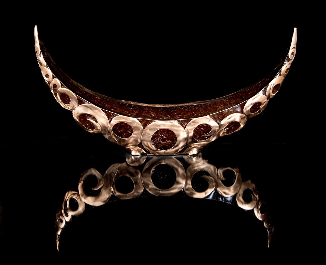 The Voyager series was born when a dying friend asked Steve Jensen to build a boat for his ashes. Since that time, Seattle-based Jensen has carved and sculpted many funeral boats for friends and family, including his own father. Coming from a long line of Norwegian fishermen and boatbuilders, Jensen grew up on his father’s fishing boat, surrounded by the natural beauty of the Pacific Northwest. Both his heritage and his experiences in nature influence his art making. Included in this exhibition will be carvings from recycled wood, sculptures made from salvaged marine bronze, oil paintings on nautical charts and mixed-media images on found wood.